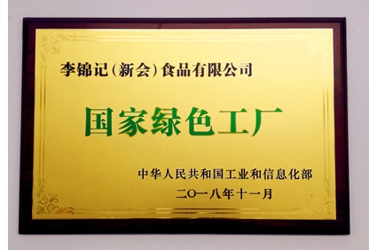 2018年11月,国家工业和信息化部公布第三批绿色制造名单,李锦记新会工厂成功入选“国家绿色工厂”。“国家绿色工厂”是经申报单位自评价、第三方评价机构现场评价、省级工业和信息化主管部门评估确认以及专家论证、公示等环节,针对符合“绿色发展”倡导的企业给出的认定。