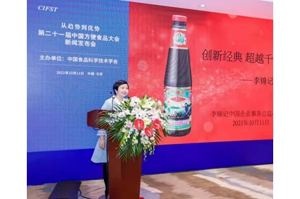 2021年10月10日,由中国食品科学技术学会主办的“第二十一届中国方便食品大会暨方便食品展”在北京隆重召开。本届大会围绕“从趋势到优势”为主题,数百位来自政府、协会的领导与科技界及行业内权威专家、众多食品企业代表齐聚一堂,共同探讨方便食品行业的创新风向和未来发展。作为食品行业的知名企业代表,百年民族品牌李锦记受邀参加本次盛会。在开幕式中的创新产品颁奖典礼环节上,李锦记凭借新品薄盐蚝油荣获“2021年度中国方便食品行业最佳创新产品”。