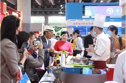 李锦记展位试吃区,是本次调博会的又一大亮点。李锦记厨务团队大师用新品烹制的菜肴飘香整个展馆,也让展位格外热闹。这次在现场烹饪的菜肴有虫草鸡蛋干、麻辣鸡丝、杏鲍菇香辣鱿鱼须等,用到的主要产品是李锦记薄盐蚝油、薄盐头道、“一招胜”麻辣香锅酱,每道菜都各具特色。美食美酒、时尚生活写作人、著名美食家庄臣也来到李锦记展位现场,为李锦记的新品和现场特制的美味菜肴点赞。